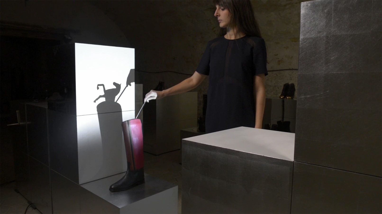 Ce projet vise à mettre en valeur la richesse de la collection de chaussures pour femmes Hermès en présentant les différents types de chaussures disponibles. Le spectateur est invité à découvrir cette diversité à travers les différents dispositifs intégrés dans un magasin. Discrètes et à l’allure de simples présentoirs, ces pièces offrent une interaction unique pour chaque type de chaussure. Ce véritable cabinet de curiosité offre à ses clients la possibilité de s’exprimer en toute discrétion. La visite offre différentes expériences visuelles et sonores afin de découvrir les différentes chaussures sous un œil neuf. En effet, alors que les chaussures sont souvent considérées comme un simple accessoire, c’est pourtant l’un des objets avec lesquels nous interagissons le plus quotidiennement : nouer des lacets, tirer une langue, user vos semelles en marchant. Ces gestes, que nous ne considérons pas, et qui se répètent quotidiennement et de façon monotone, sont ici mis en valeur et célébrés. Si certaines pièces évoquent directement le monde mécanique et artisanal, d’autres s’inspirent directement de la forme, du matériau ou du caractère de la chaussure pour proposer des résultats et des histoires uniques qui font appel à l’imagination et à la rêverie.